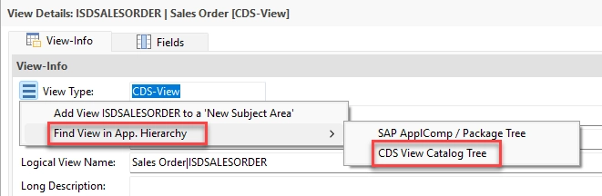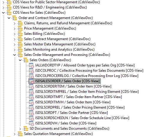 Going back to the first CDS View – ISDSALESORDER – this can be located in the Hierarchy: