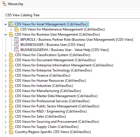 To assist with easier search and navigation of these data assets, we have implemented a new Hierarchy for them in Safyr. This groups the CDS Views into the same groupings described in the SAP Virtual Data Model documentation.